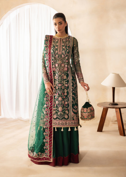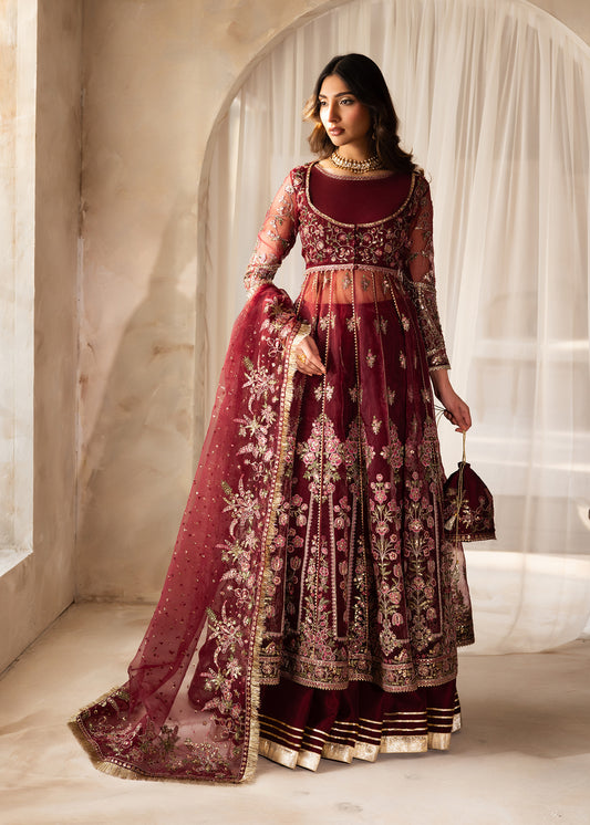 Design Name: Iris Color: Deep Maroon, Powder Pink & Forest Green Features:Shirt- Pure NetSharara- Korean...