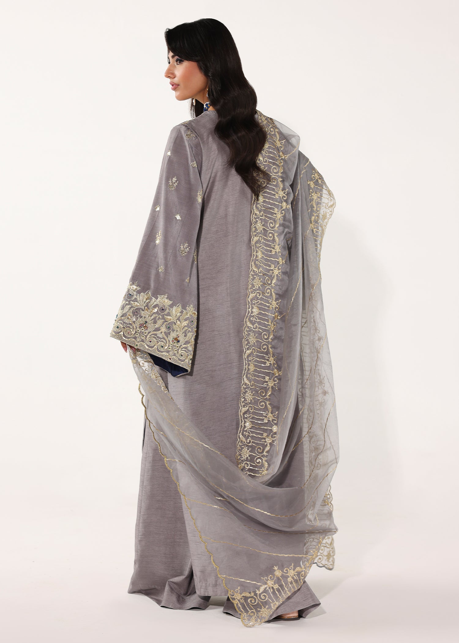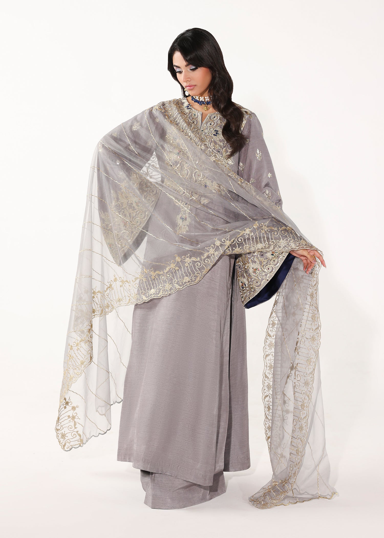 Crafted from premium Korean raw silk, the Elza Ensemble offers a smooth texture and a refined, luxurious finish. Designed for effortless elegance, the outfit is paired with a sheer organza dupatta, adding a light and graceful touch to the overall silhouette.